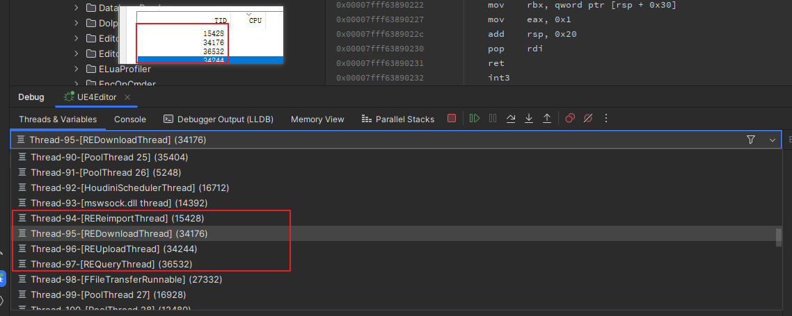 Use ProcessExplorer to find the process, open Properties - Threads, and you can see the CPU usage of each thread’s PID.