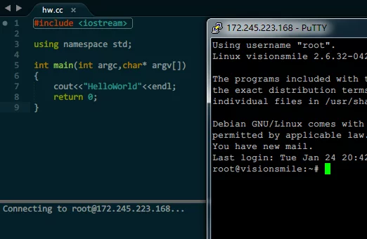 These past few days, I wrote a small Sublime Text plugin during my free time to remotely compile C/C++ code on Windows, meaning that I write the code on Windows but it actually executes on Linux. I’ve only implemented the functionality for now, and I plan to optimize it during my break after the holidays.