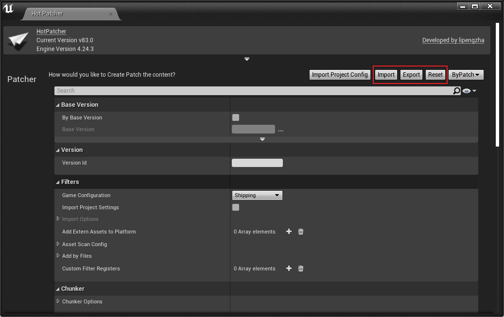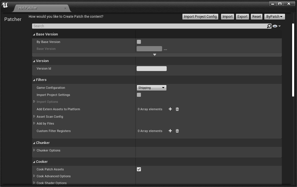 Again using HotPatcher as an example, opening byPatch on the main interface will pop up a configuration panel: