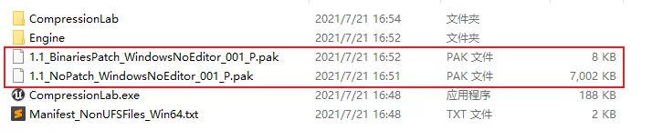 The two files in the red box, one has gone through BinariesPatch and the other is the original Cooked file, can perform the same function and can be placed in CompressionLab/Content/Paks for testing.
