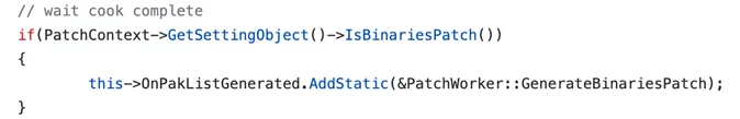 Once FPatchPakPlatformFile is implemented, it can be placed into the engine’s runtime. The engine’s code needs to be modified to replace the PakFile module with PatchPakFile so that our code can take effect.