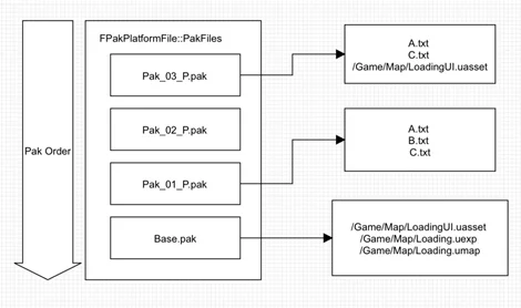 When UE loads files from Pak, it sorts them according to PakOrder, which is also the foundation for UE’s hot update implementation. The reading of files from Pak is implemented in IPlatformPakFile.cpp, which is located in the UE’s PakFile module.