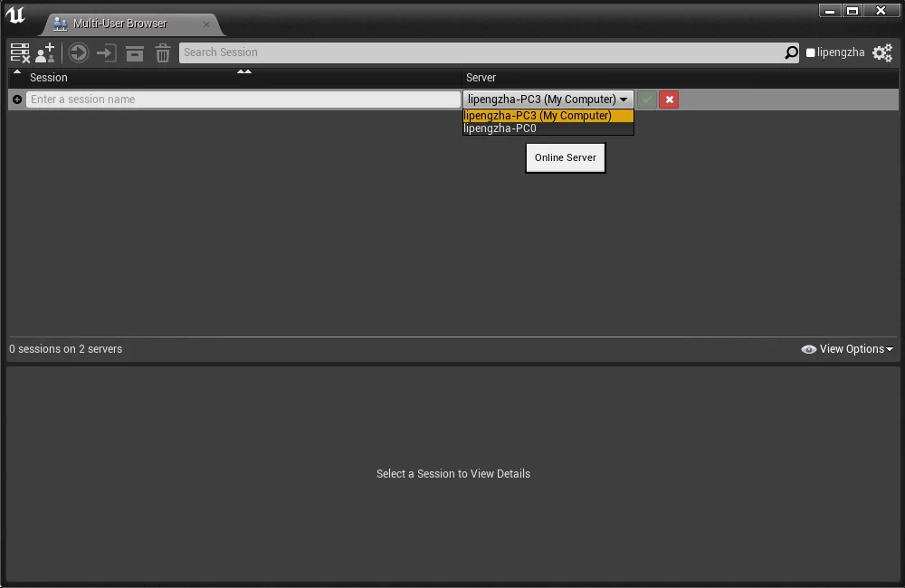 After startup, it will automatically search for visible UnrealMultiUserServer servers in the network: