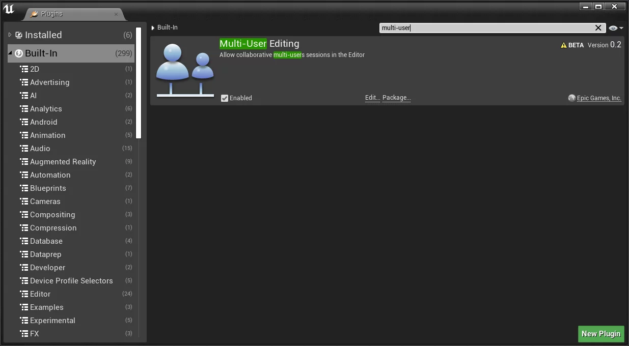 Multi-user editing support relies on UE’s Multi-User Editing plugin: