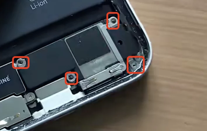 When removing the motherboard, the rear camera shield has already been unscrewed. These components are relatively independent and don’t stack like the lightning connector, making them easier to remove, so I won’t elaborate here.