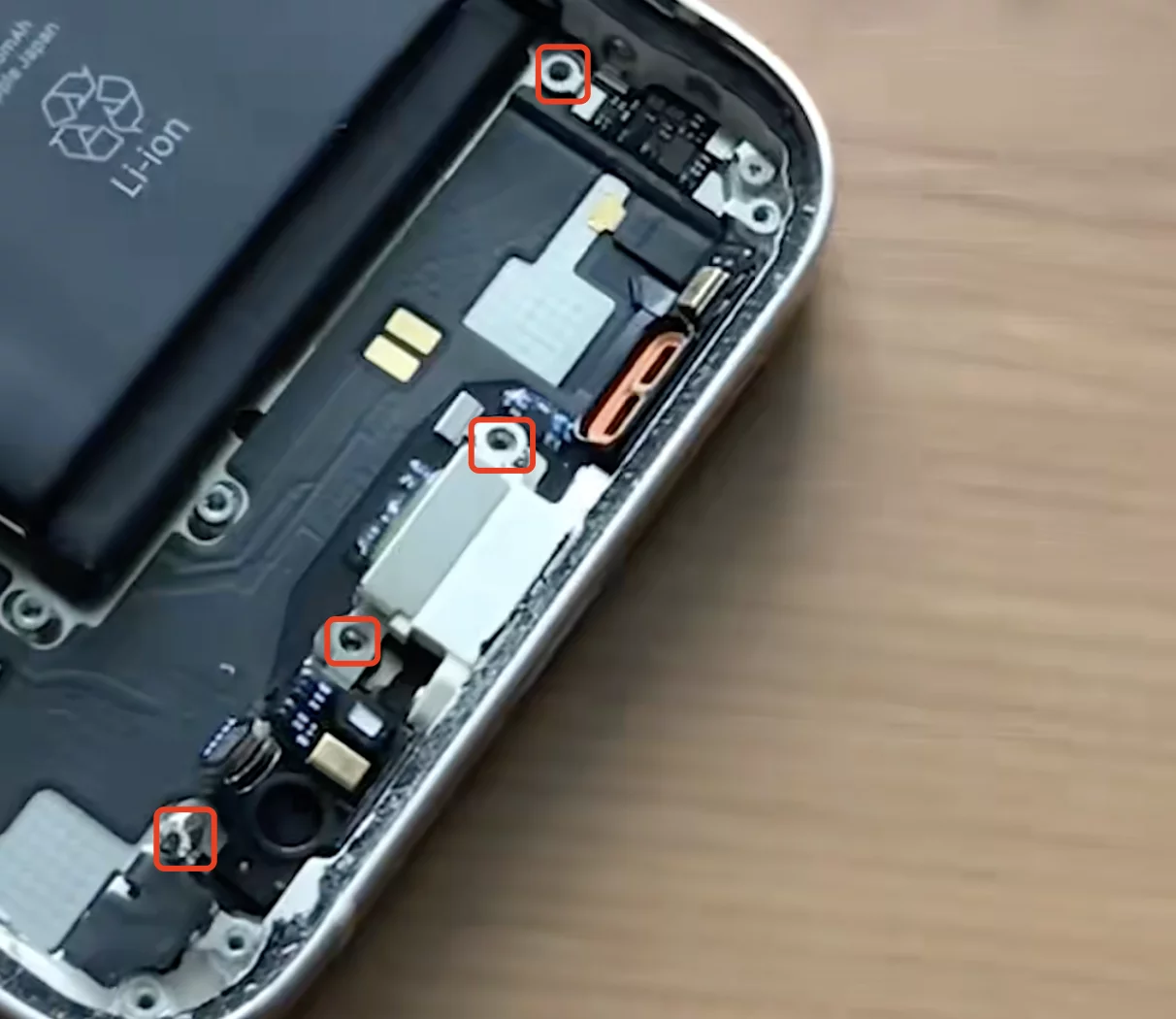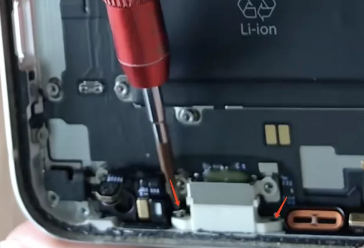 - Unscrew the 2 screws on both sides of the bottom charging port.
