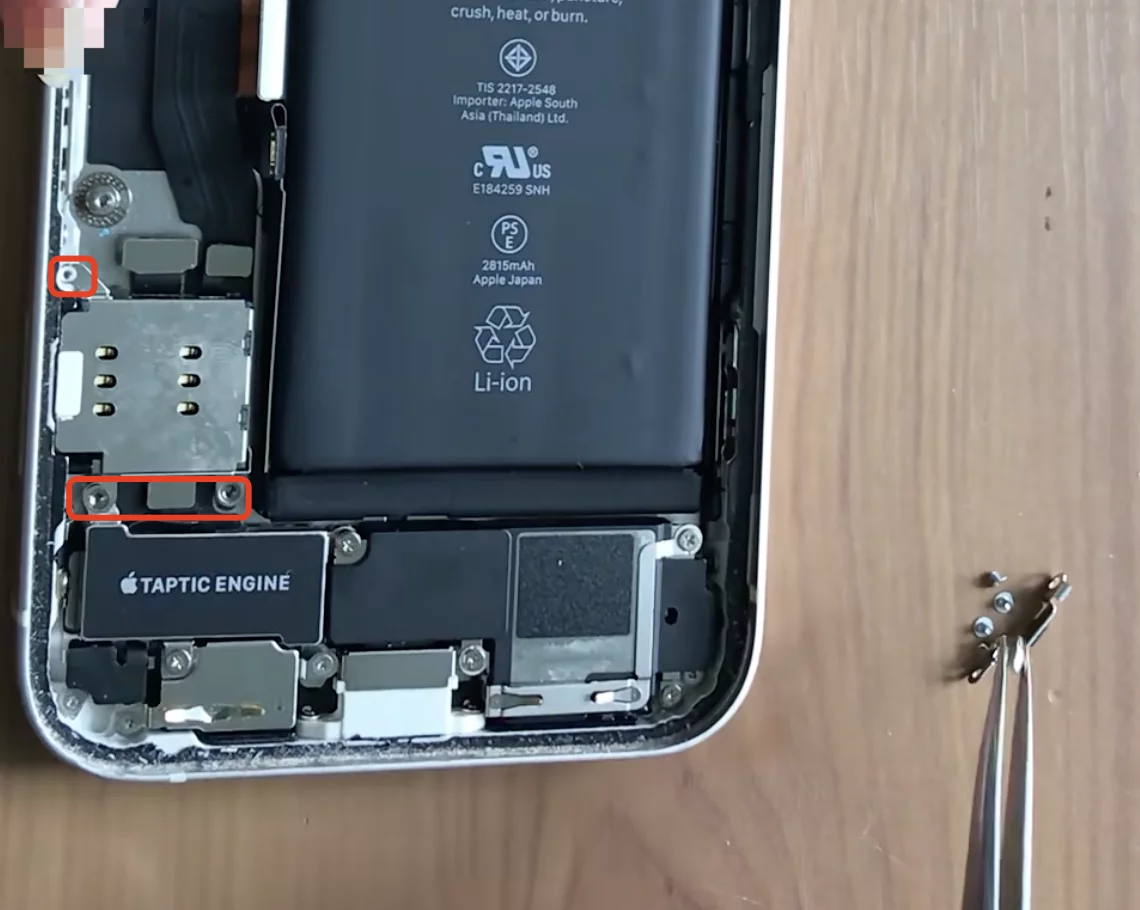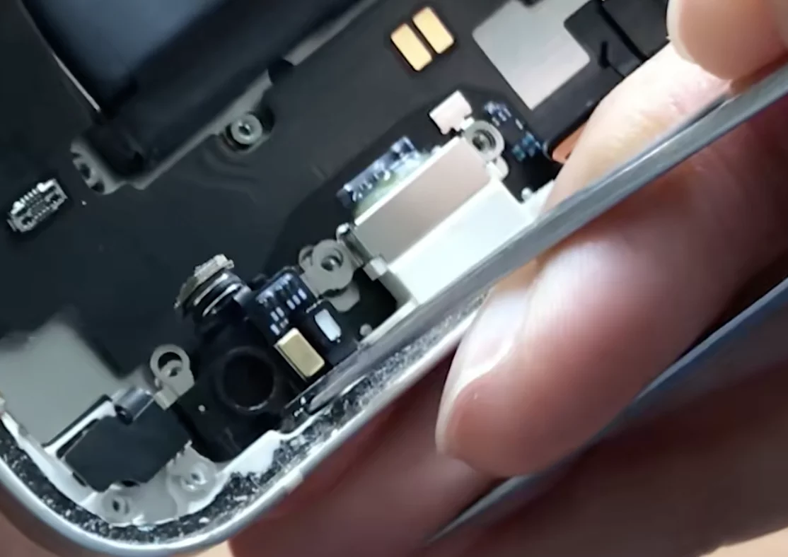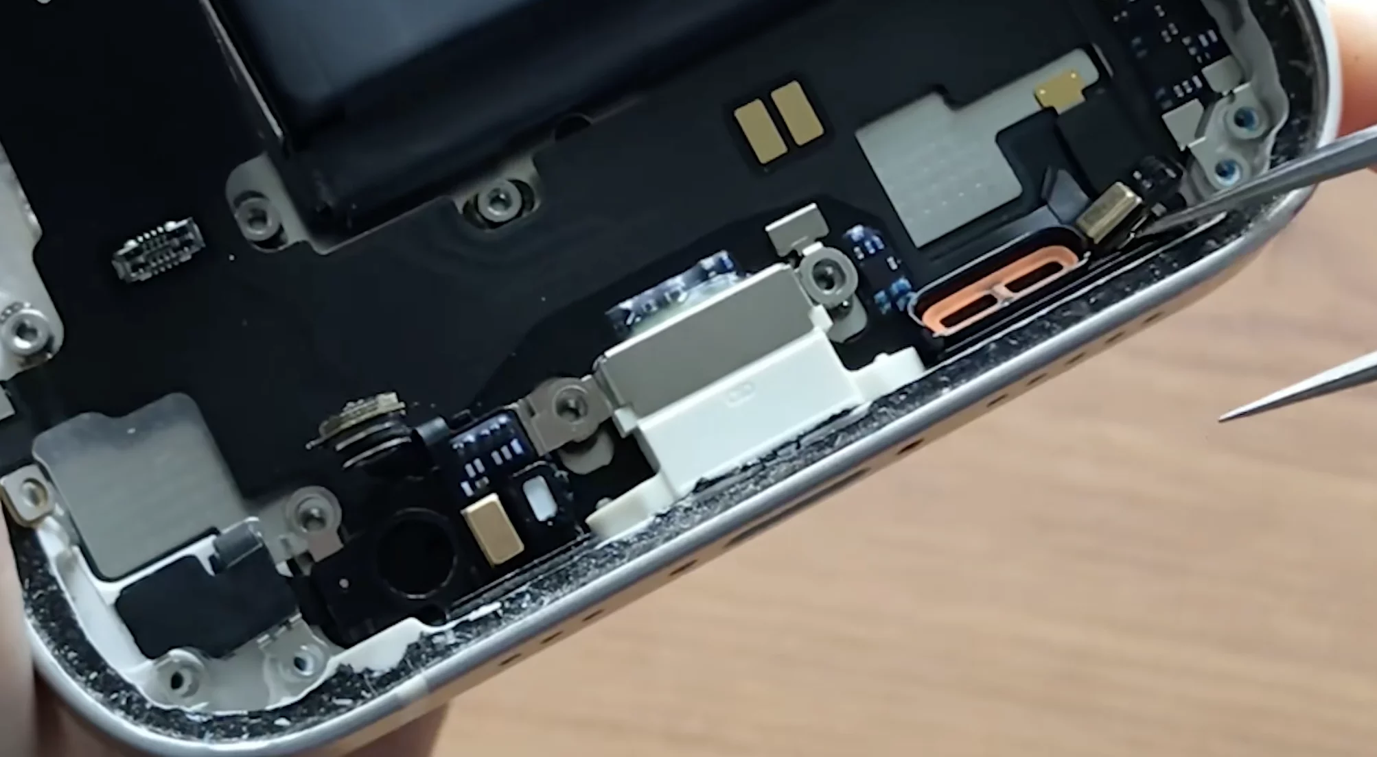 At this point, the lightning connector part has been completely separated and can first be installed onto the new rear cover assembly along with the SIM card slot and vibration component.