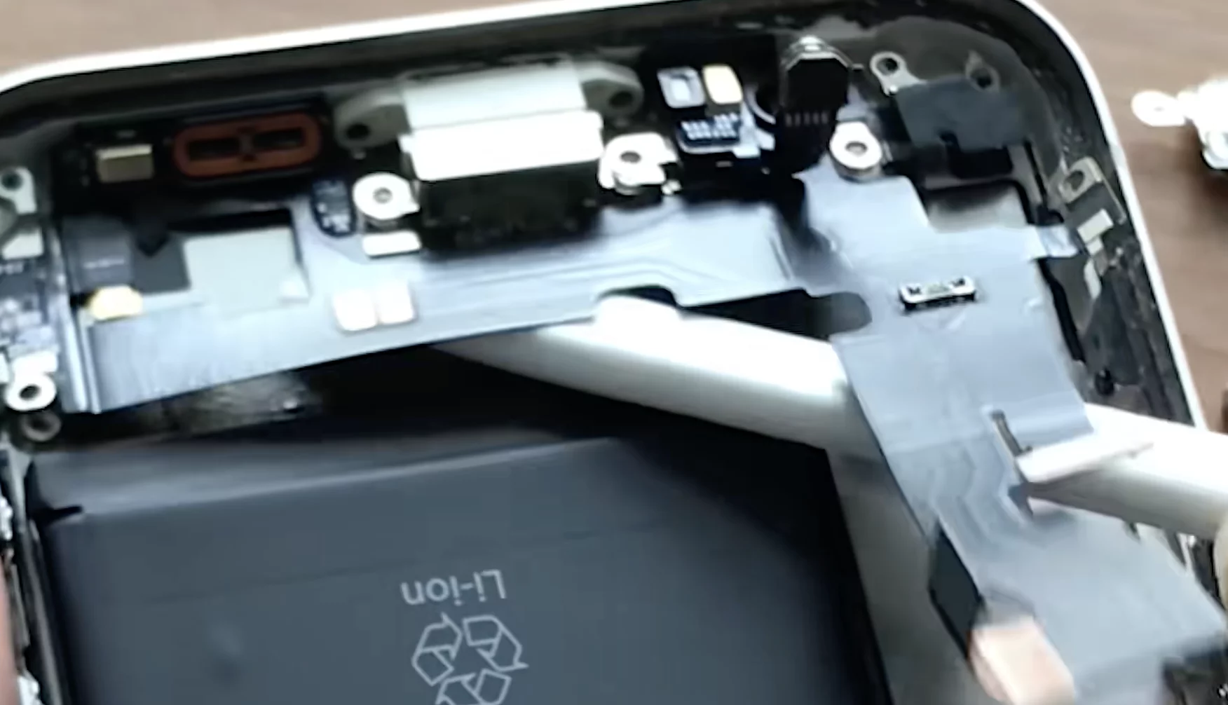Separate the lightning connector flex cable (be careful not to tear it, there’s adhesive).