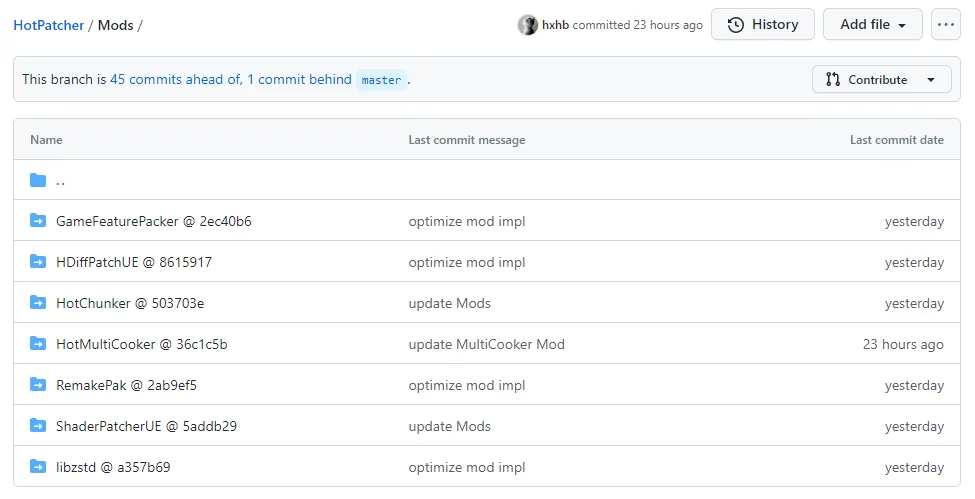 HotPatcherCore is included in the main repository, while the other modules are independent repositories.