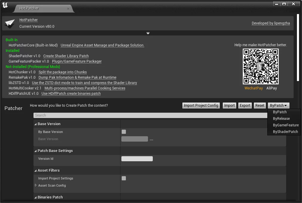 - The version release of HotPatcher will only include the HotPatcherCore module.