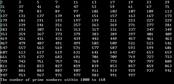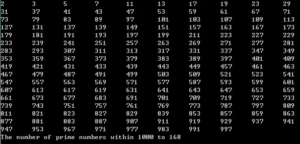 A total of 168 prime numbers were found within 1000.