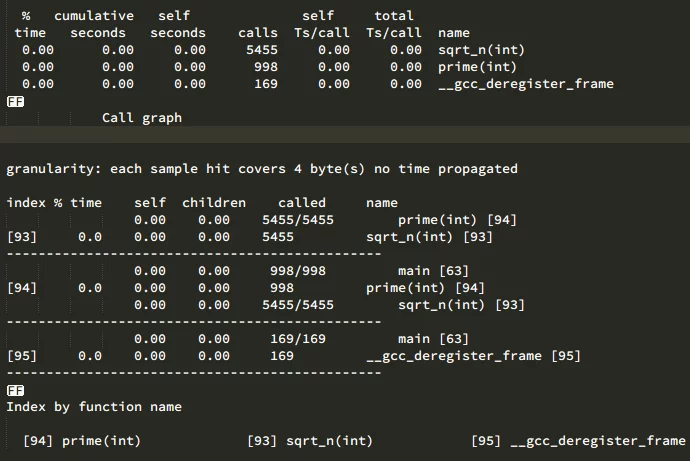 Here, let’s simply discuss how to use gprof (for more parameters, you can check the above blog):