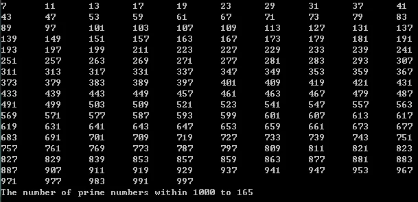 Only 165 prime numbers were found within 1000, while our exhaustive search (the first code) yielded 168.