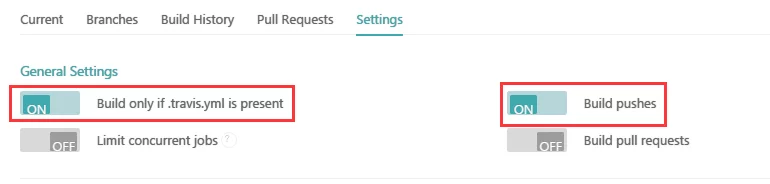 - Build only if .travis.yml is present: Only build if the branch configured in .travis.yml has changed.