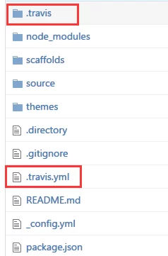Next, move both .travis and .travis.yml to the blog source files, with the following directory structure: