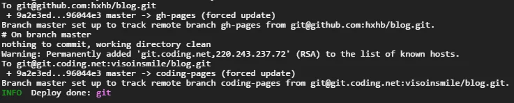 You can then push the blog source files to the Github repository (note that this is the blog source files, not the files in the public folder generated by hexo g).